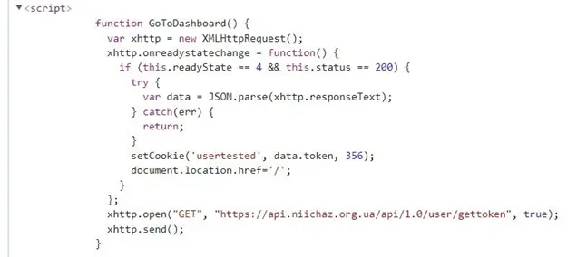 Скрипт переходу на сторінку авторизації