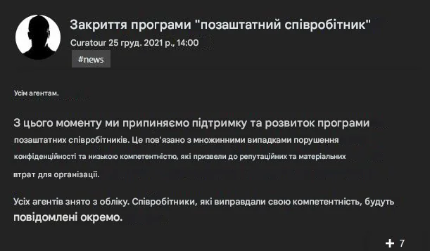 Останнє повідомлення куратора