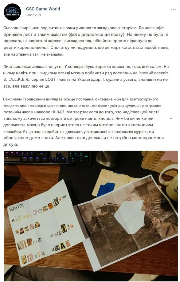 GSC не залишилися в стороні і виклали пост: