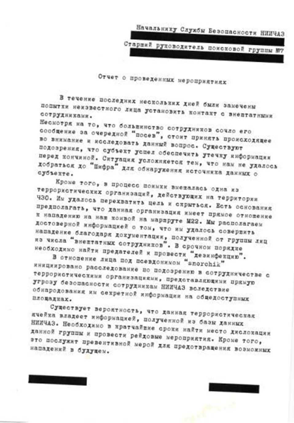 Секретний рапорт НДІЧАЗ