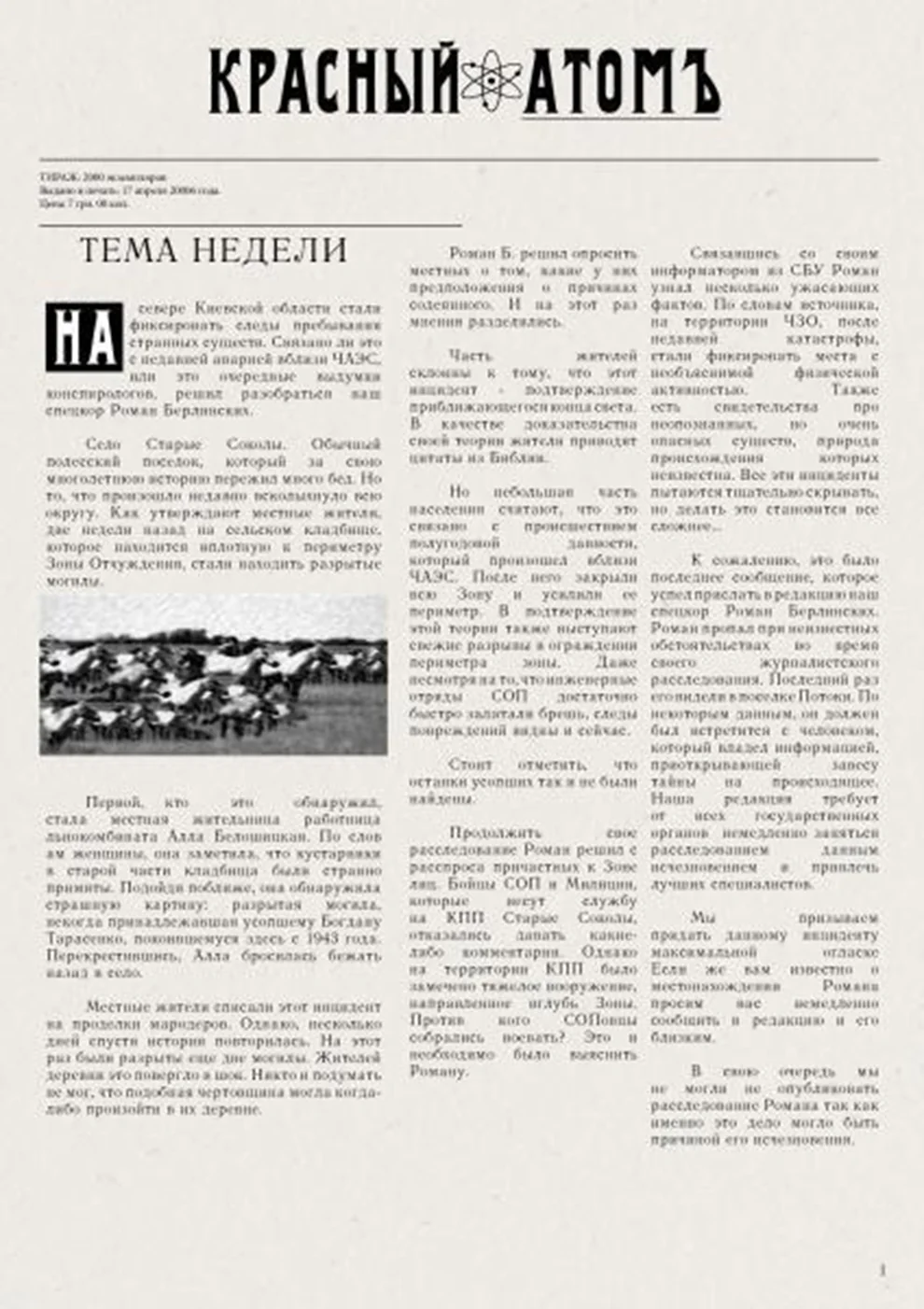 У доданому архіві міститься секретний документ від НДІЧАЗ про ворожу організацію. Також там додані ті самі газетні статті, які ми раніше збирали зі шматків карт.