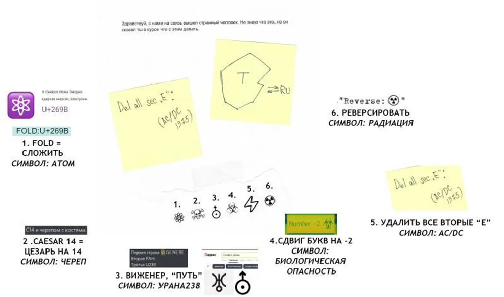Усі символи були підказками до конкретних дій. Таким чином ми змогли застосувати наші «FOLD:U+269B», «Number -2☣️» і «Reverse:☢️». Ця частина ARG є логічним фіналом усієї історії. Ось як нам за задумом потрібно було розгадати текст: