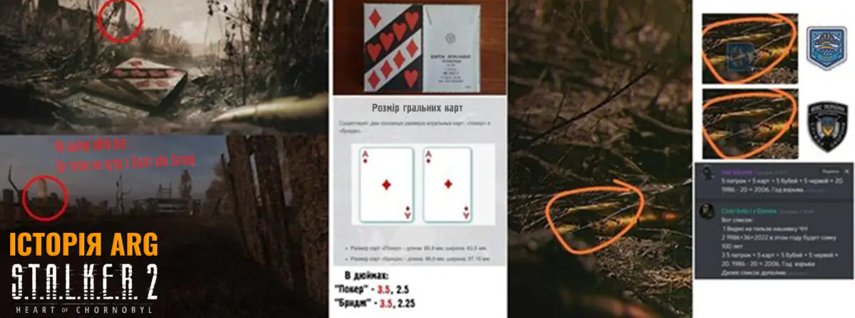 Нарешті, GSC публікують величезний пост з рендером колоди карт та текст до нього, що пояснює, що за допомогою гральних колод із Зони часто передають повідомлення. У цей момент Шифр вийшов із нами на зв’язок і передав нову інформацію.