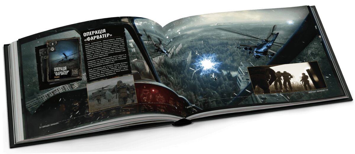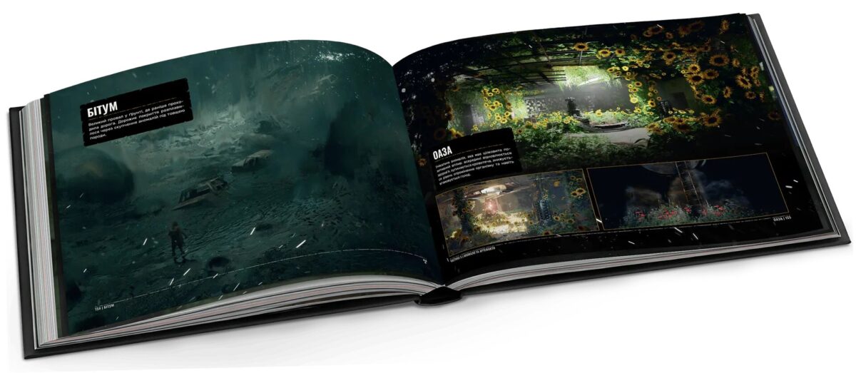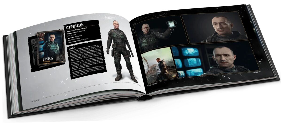 Перше, що впадає в очі — якість виготовлення. Тверда палітурка, 192 сторінки щільного друку, насичені арти. За рівнем поліграфії видання не поступається, а подекуди навіть перевершує офіційний артбук від Dark Horse Comics та MAL’OPUS, який коштує втричі дорожче. При цьому структура матеріалу продумана краще: всесвіт гри розкривається послідовно й логічно — від зародження Зони аж до подій першого сюжетного доповнення Cost of Hope.
