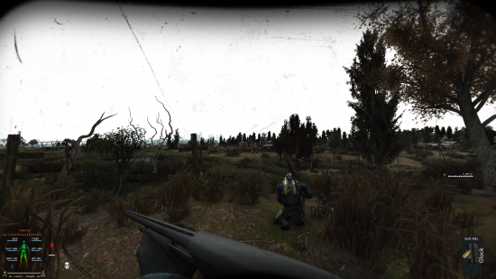 - Токсичне повітря, яке погіршується, чим далі на північ ви рухаєтеся (починається над лугом Кордон та болотами)Токсичне повітря повільно задушить вашого персонажа, вам знадобляться фільтри для протигазу або кисневі балони. Токсичне повітря та радіація мають високу концентрацію в підземних спорудах та лабораторіях Токсичне повітря та динамічна погода/радіація не можуть бути вимкнені